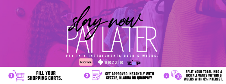 Fill Your Cart, Fulfill your oder & Select one of our Third Party Installment Partners & Slay your look and make 4 installment payments over 4 weeks at 0% interest!
