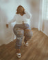 Our distress denim jeans with the stylish bottom flare is it... These are super cute and sexy and stretchy.